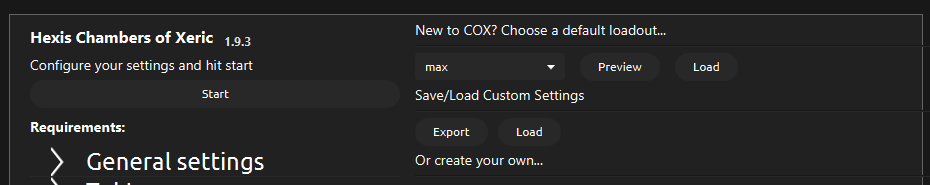 Hexis Chambers of Xeric provides built-in settings profiles so you can load them straight from the bot - no need to download files yourself.