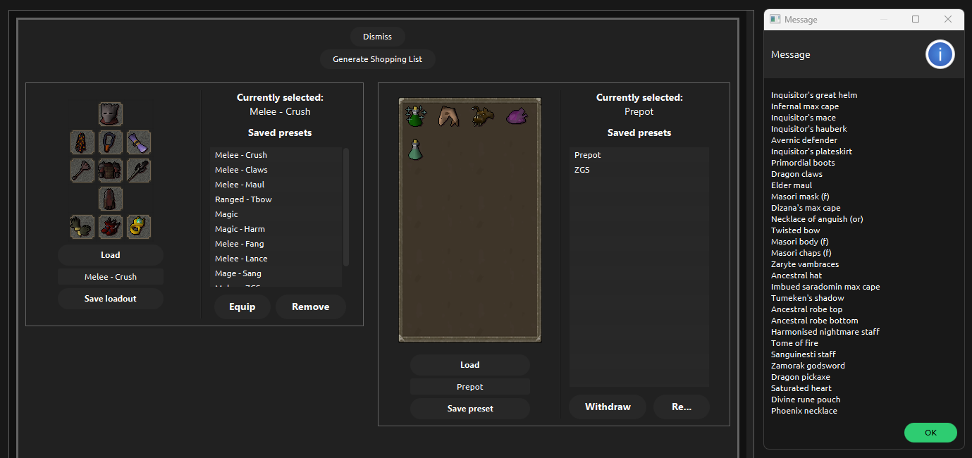 * On release the bot will not fully support Scything Olm (or any other 5 tick weapon for that matter). I suggest bringing a Dragon Hunter Lance in the meantime
