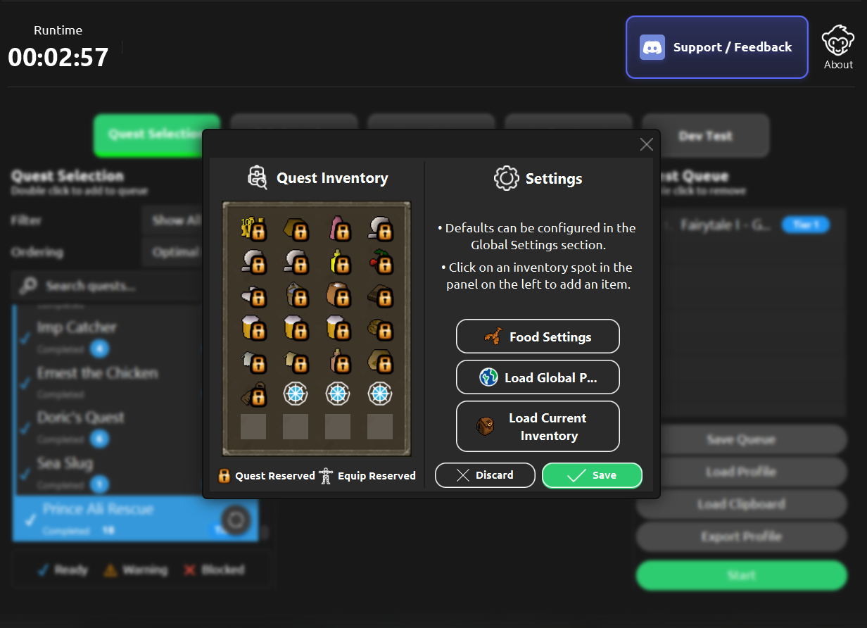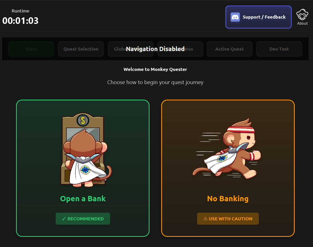 Welcome to Monkey Quester! Runemate's only ironman-friendly quest bot! This bot will automatically gather the items needed for each supported quest and run the quests that you select.